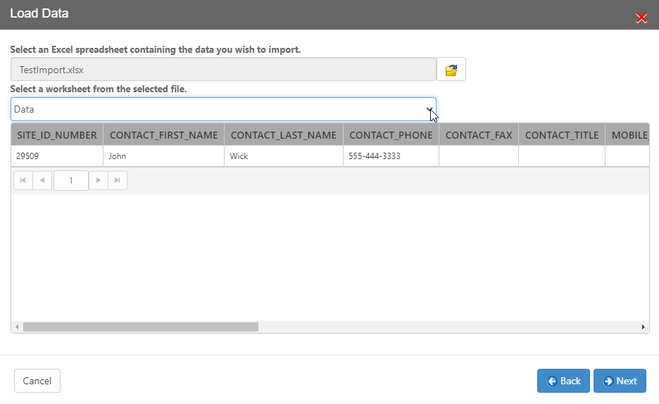 4. Select the worksheet from the dropdown that contains the data you want to import. The data will be displayed in the table below. Click Next.
